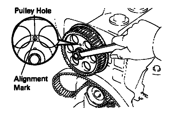 (c) Check that each pulley aligns with the timing marks as shown in the figure.