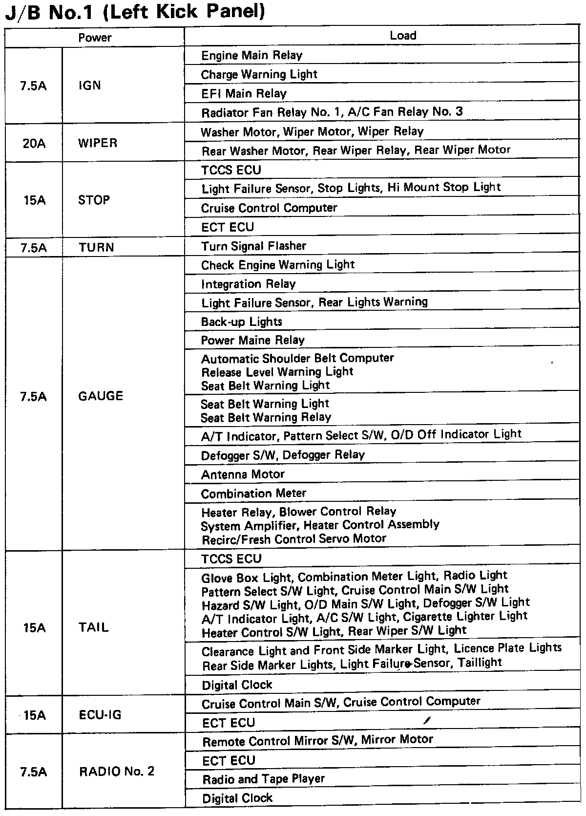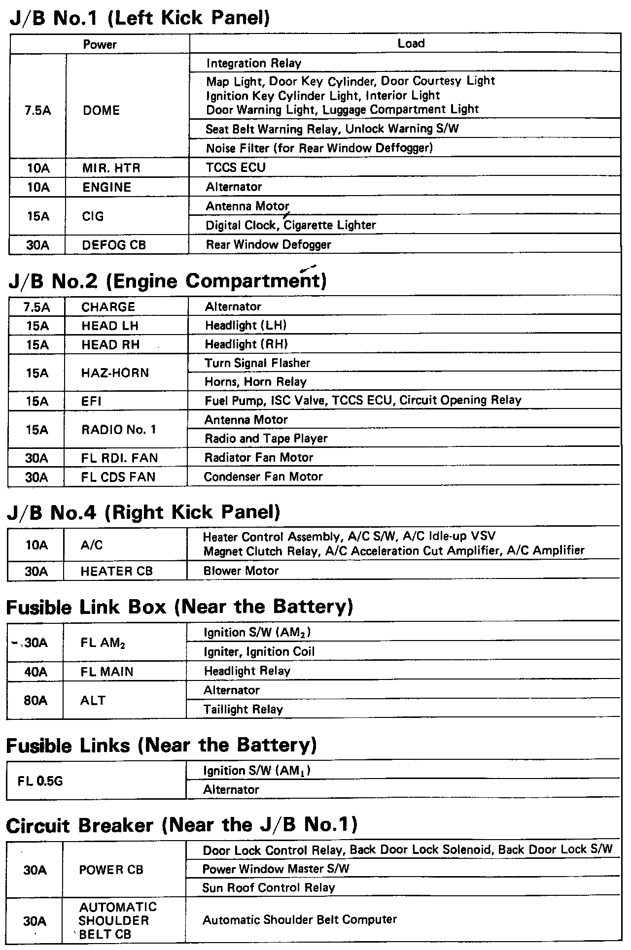 J/B No.1, No.2, No.4 And F/L Boxes - Fuses, Links And CB:
