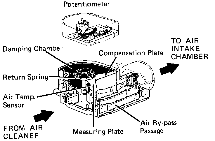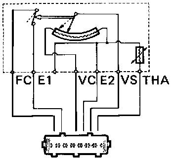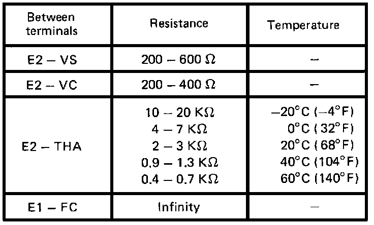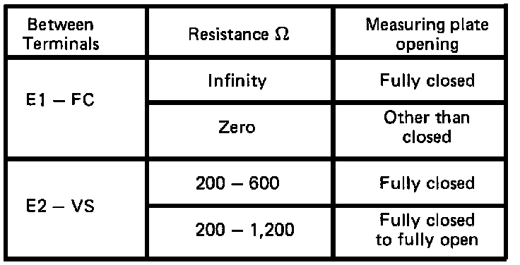 NOTE: Resistance between terminals E2 and VS will change in accordance with the measuring plate opening. If the resistance is not as specified, replace the meter.