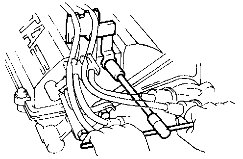4. DISCONNECT HIGH-TENSION CORDS FROM SPARK PLUGS AND IGNITION COIL.