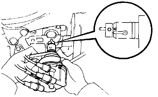 c. Loosen the two hold-down bolts, and adjust by turning the distributor.