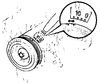 NOTE: The timing mark moves in a range between 14° and 19°.