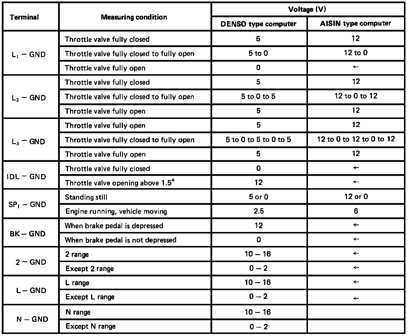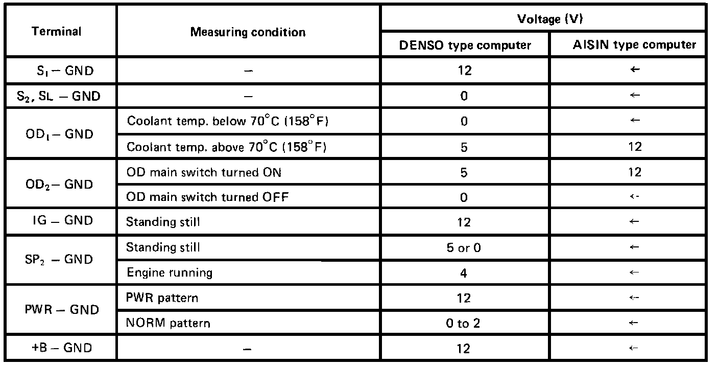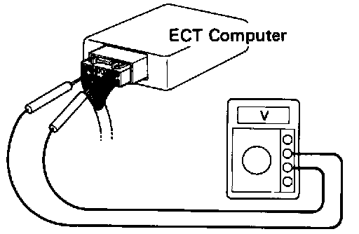 INSPECT VOLTAGE OF ELECTRONIC CONTROLLED TRANSAXLE (ECT) COMPUTER CONNECTOR.
