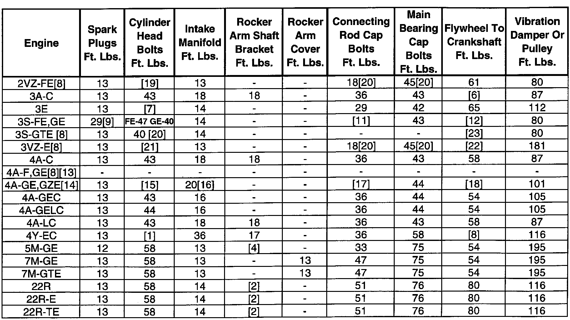 12- 3S-FE, 72 ft.lbs. ;3S-GE, 65 ft.lbs.
