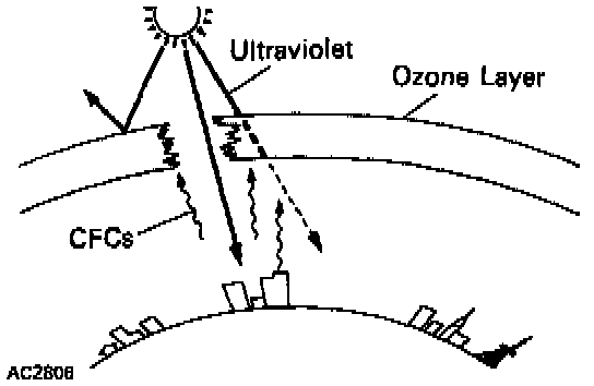 Refrigerant (CFCs) for automobile air conditioning is believed to cause harm by depleting the ozone layer which helps to protect us from the ultraviolet rays of the sun. Therefore, it is necessary to prevent release of refrigerant to the atmosphere and to use the minimum amount when servicing the air conditioning.