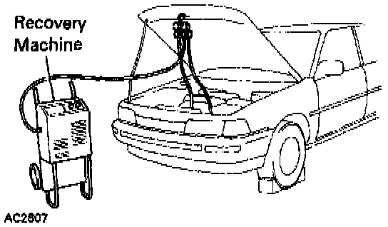 1. Use recovery machine to recover refrigerant. When discharging refrigerant from the system as follows, use a recovery machine to recover the refrigerant.
