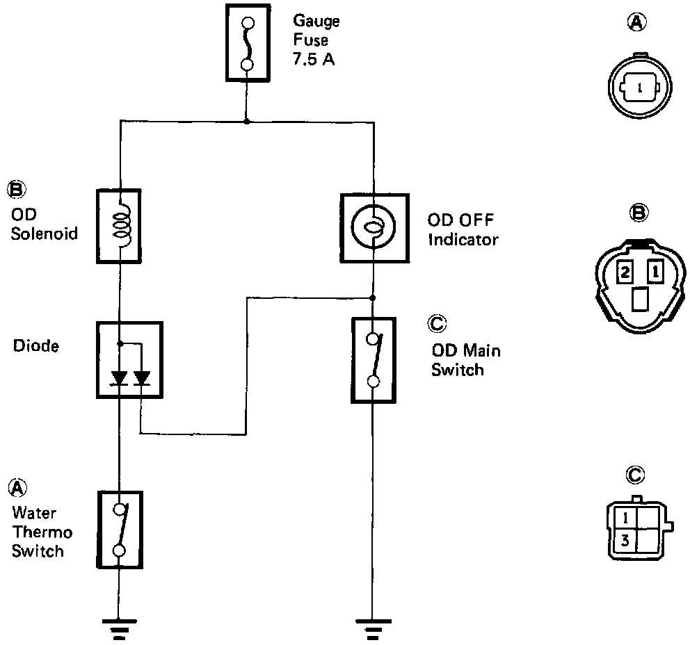 c. Check that the OD "OFF" indicator lights.
