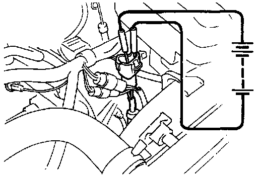 b. Apply voltage between terminals 1 and 2. At this time, confirm that a solenoid operation sound in heard.