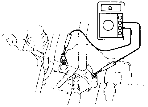 c. Using an ohmmeter, measure the solenoid coil resistance between terminals 1 and 2.