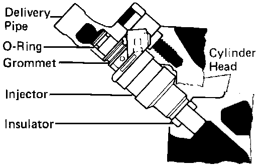 4. Install the injector to delivery pipe and cylinder head as shown.