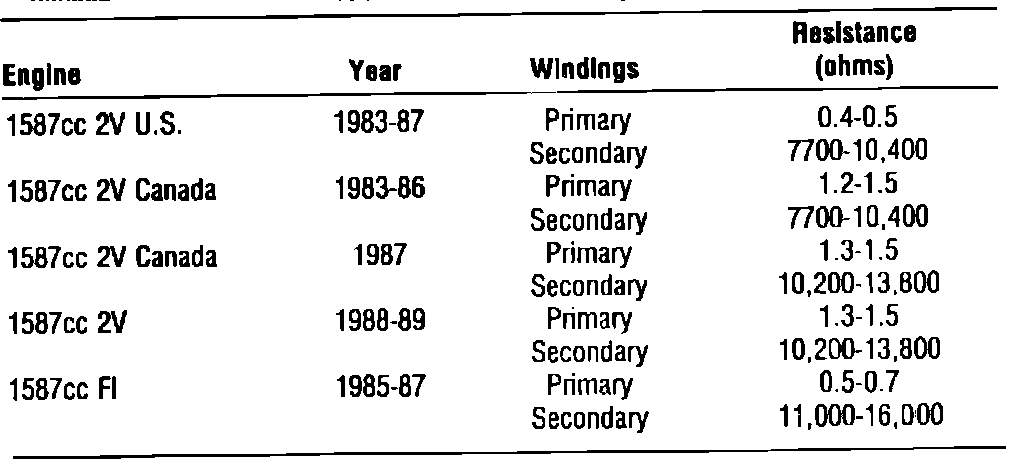 Fig. 10 Ignition Coil Specifications: