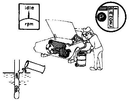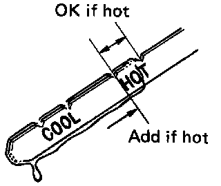 e. With the engine idling, check the fluid level. Add fluid up to the "COOL" level on the dipstick.