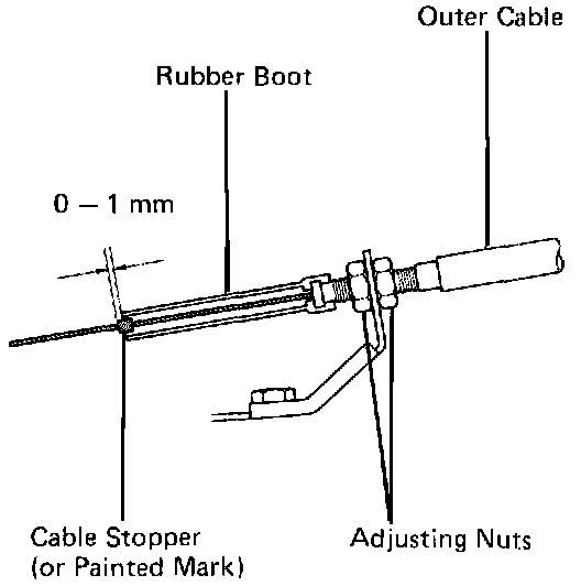 d. Adjust the cable housing so that the distance between the end of the boot and stopper on the cable is the standard.