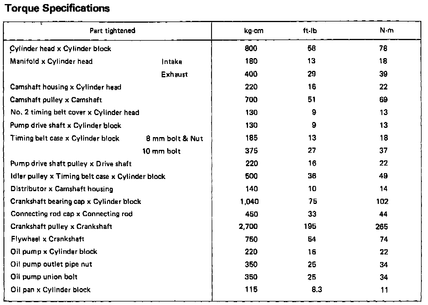 Cressida Sedan L6-2759cc 2.8L DOHC (5M-GE)