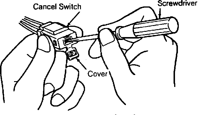 This light illuminates at 30,000 mile intervals. Reset switch is clipped to left kick panel on Supra. Switch is located under instrument panel next to steering column on Cressida. Free switch, open cover and move switch to opposite position.