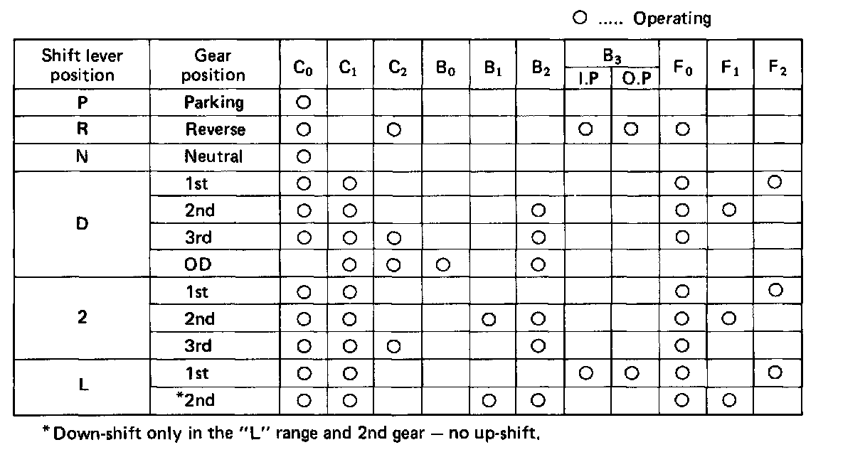 Possible gear positions in accordance with solenoid operating conditions.