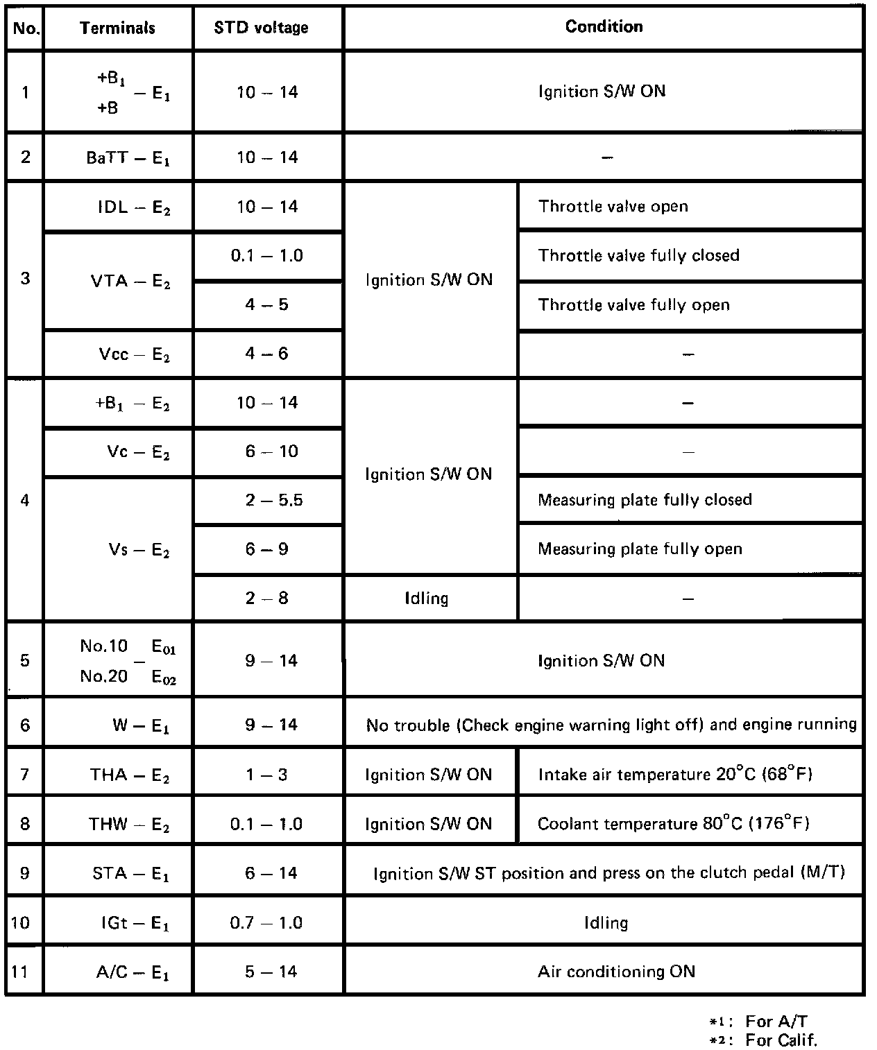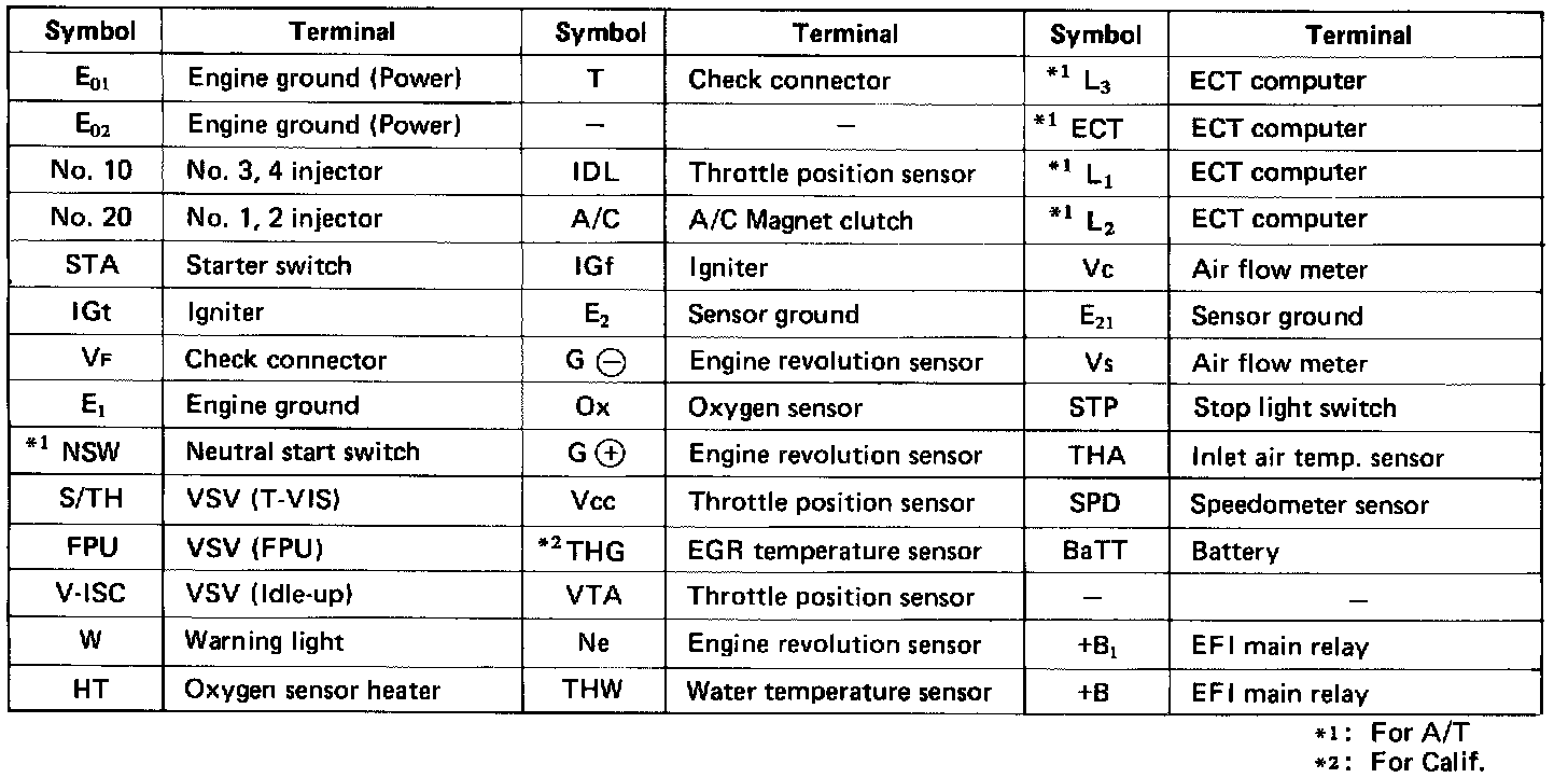 ECU PINOUT VALUES