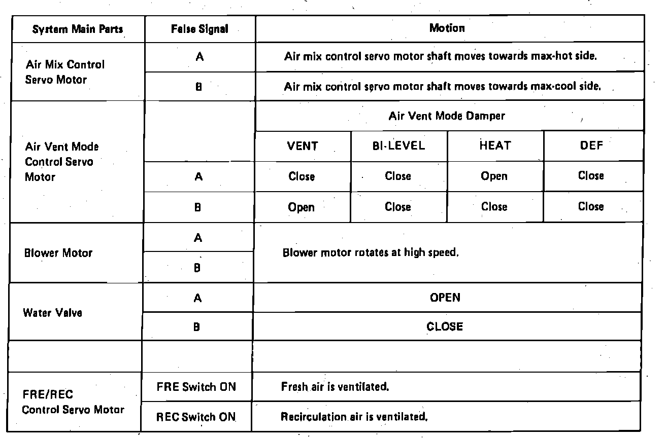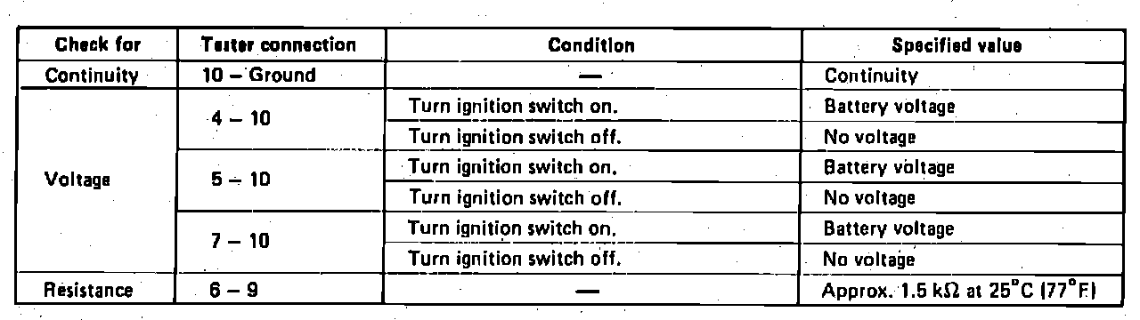 To check A/C amplifier control circuit, turn ignition switch to the ON position, move temperature control lever to MAX COOL and turn blower control switch to HI. Check for resistance and voltage values between connector terminals Fig. 35. If any readings are not as specified, Figs. 36 & 37 locate and repair faulty wiring or replace amplifier if necessary.