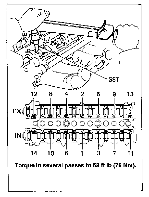 Camshaft Bearing Cap Bolt Torque Sequence: