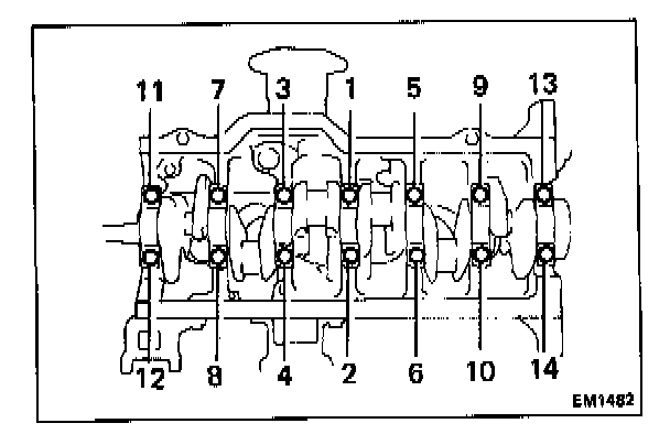 Crankshaft Main Bearing Cap Bolts Torque Sequence: