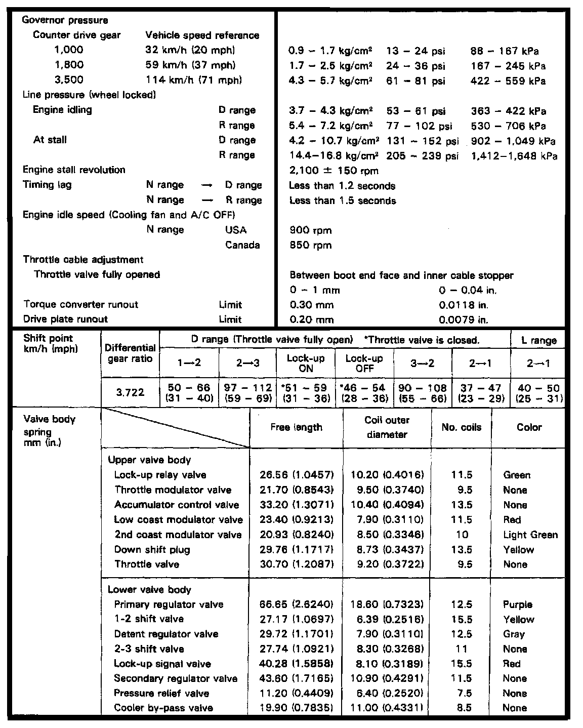 A132L 3-spd A/T, Line Pressure/Shift Points: