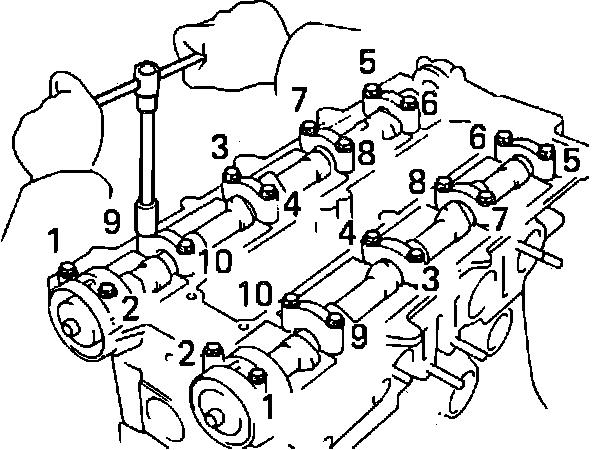 Fig. 10 Intake & Exhaust Camshaft Bearing Cap Bolt Tightening Sequence.:
