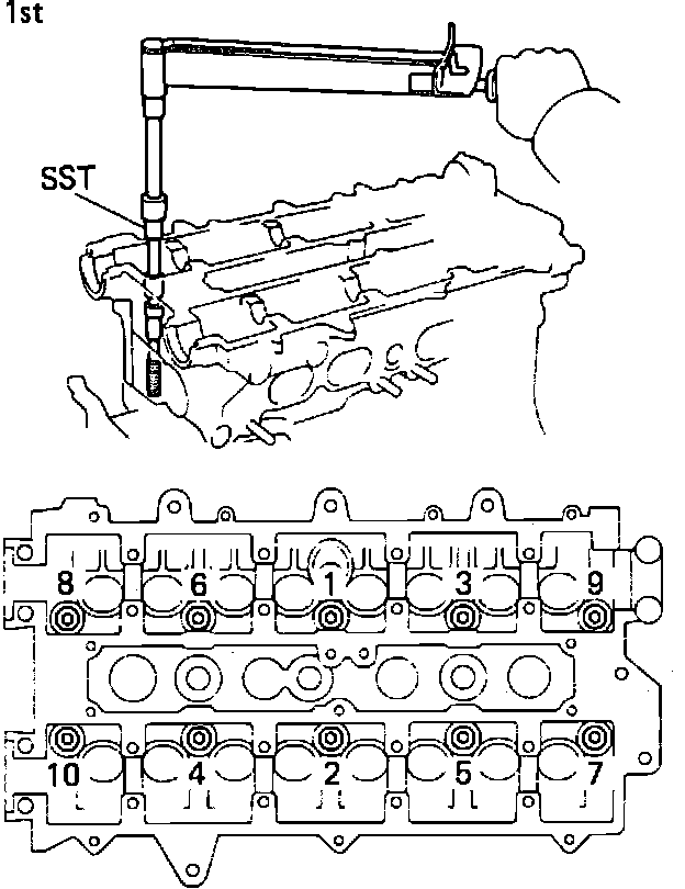 Fig. 8 Cylinder Head Bolt Tightening Sequence.: