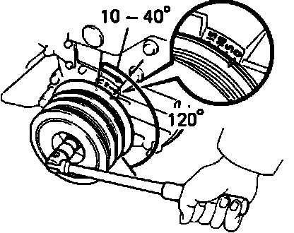 6. Turn the crankshaft clockwise 10 to 40° so the timing marks align to TDC.