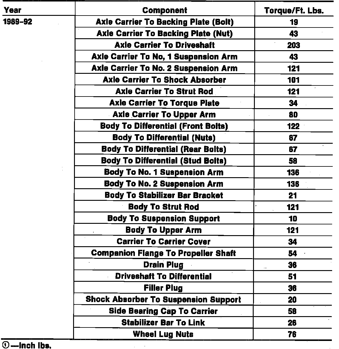 Tightening Specifications: