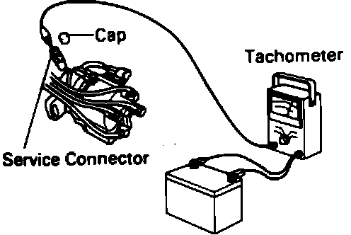 2. Connect a tachometer test probe to the distributor terminal service connector. Fig. 53