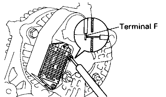 - With terminal F grounded, start the engine and check the voltmeter reading of terminal B+.