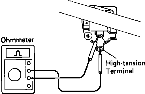 8. Using an ohmmeter, measure resistance between ignition coil (+) and the secondary terminals.