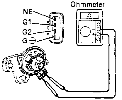 7. Using an ohmmeter, measure resistance between ignition coil (+) and (-) terminals.