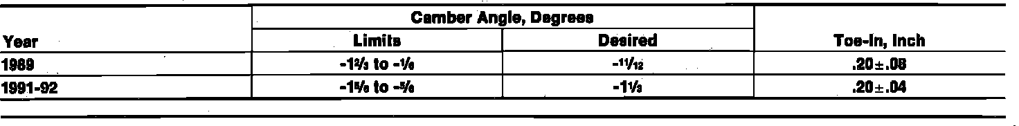 Front Whel Alignment Specifications: