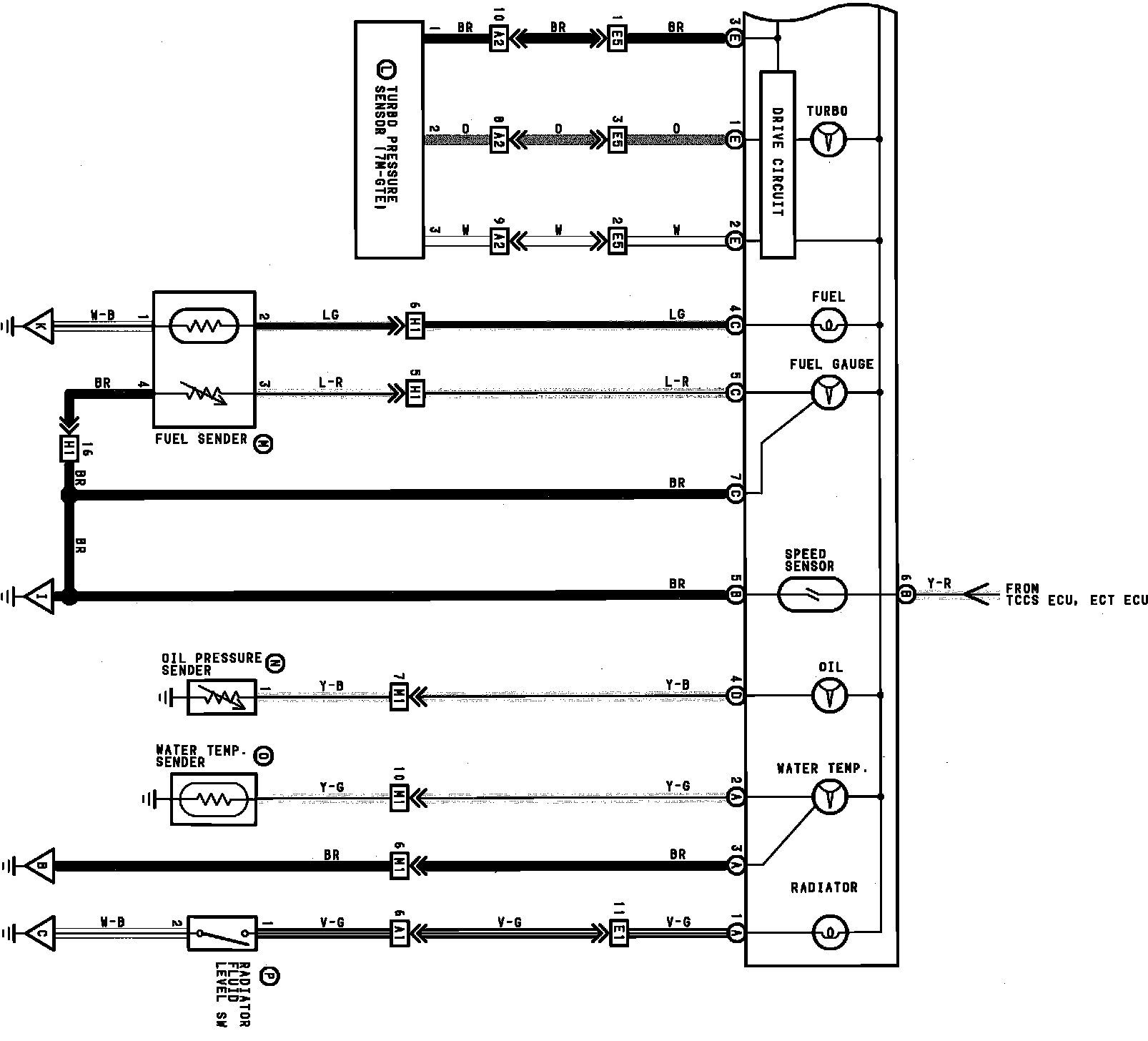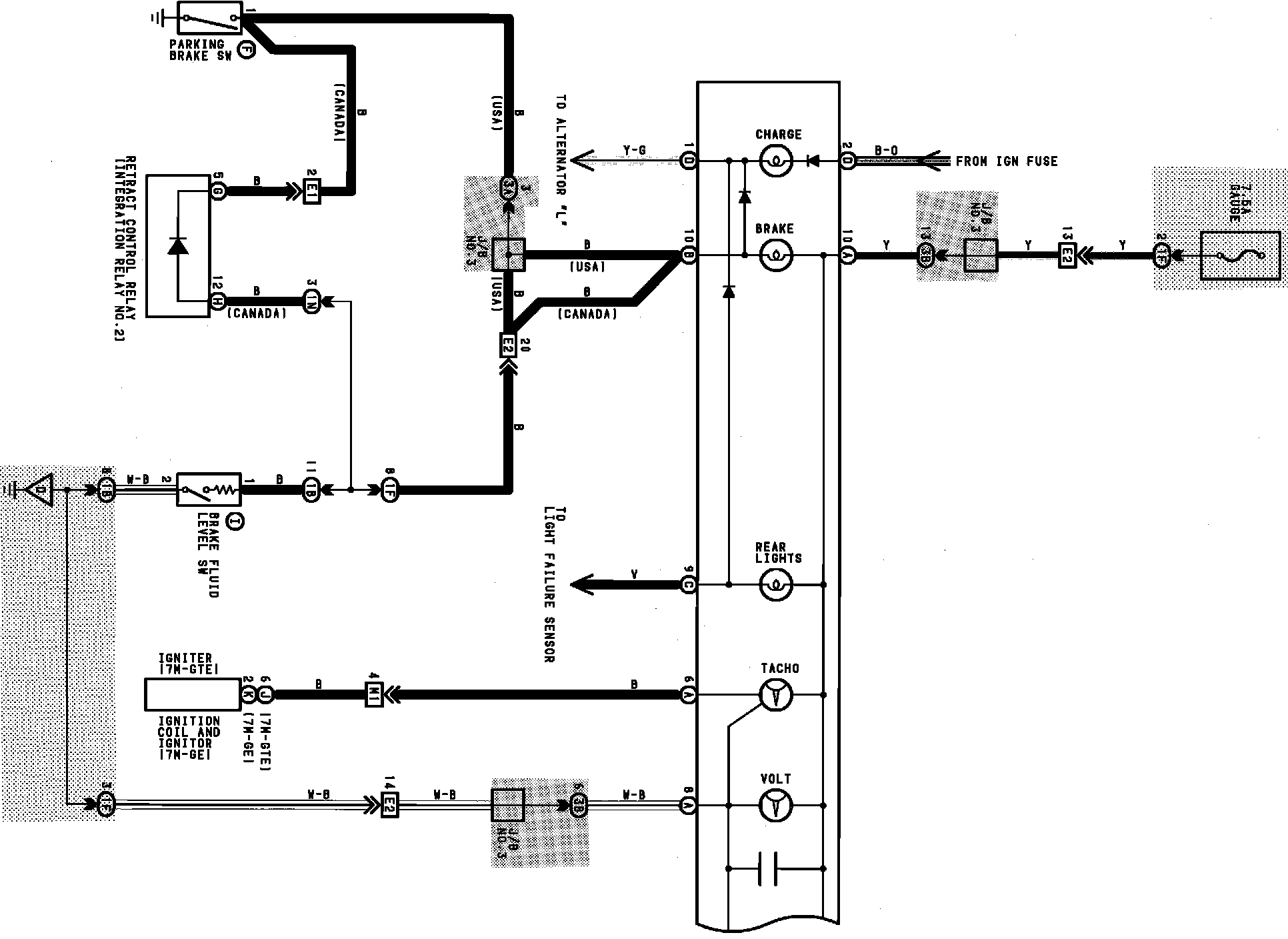 Gauges, Instrument Panel Circuit Board Wiring, Brake, Charge, Cooling Fan, Fuel & Rear Lights: