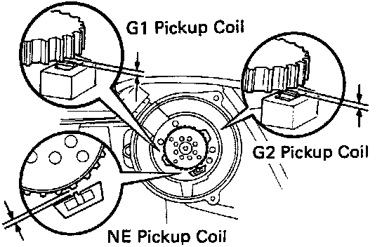 Using a feeler gauge, measure the gap between the signal rotor and pickup coil projection.