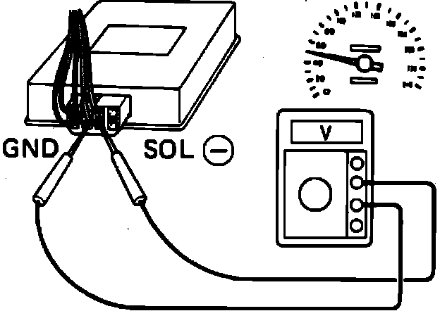 5. Place transmission in gear and while running at 31 mph, measure voltage between terminals SOL - and GND.