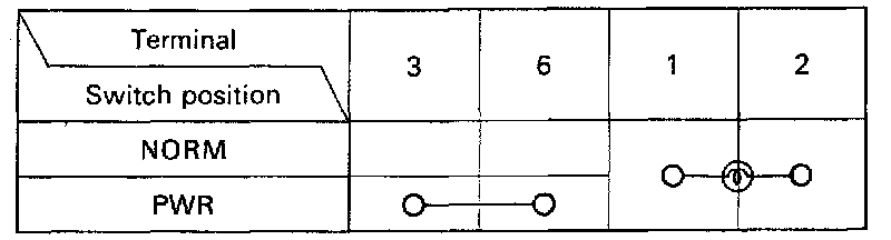 Check continuity between terminals as shown in the switch operation chart.