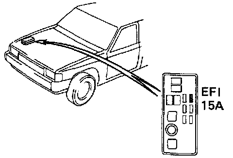 After repair of the trouble area, the diagnostic code retained in memory by the Engine & ECT ECU must be canceled by removing the EFI fuse (15A) for 10 seconds or more, depending on ambient temperature (the lower the temperature, the longer the fuse must be left out) with the ignition switch OFF.