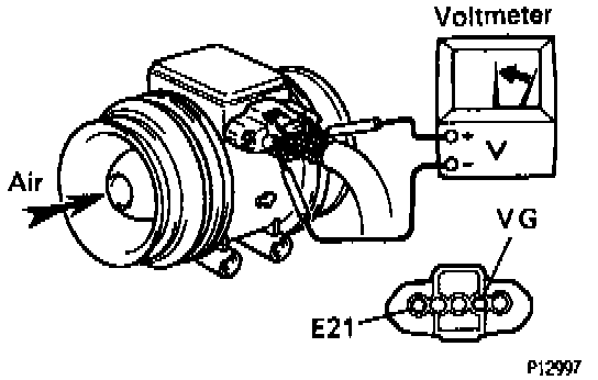 ^ Using a voltmeter, connect the positive (+) tester probe to terminal VG, and negative (-) tester probe to terminal E21.