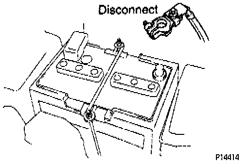 1. Disconnect negative (-) terminal cable from battery.