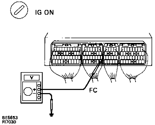^ Measure voltage between terminal FC of Engine Control Module and body ground.
