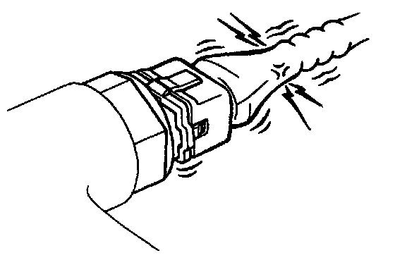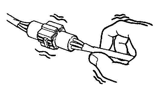 Using the symptom simulation, apply vibration to and pull lightly on the wire harness, connector or terminals in the circuit indicated by the malfunction code. In this test, if the malfunction indicator lamp lights up, it indicates that the place where the wire harness, connector or terminals being pulled or vibrated has faulty contact. Check that point for loose connection, dirt on the terminals, poor fit or other problems and repair as necessary.