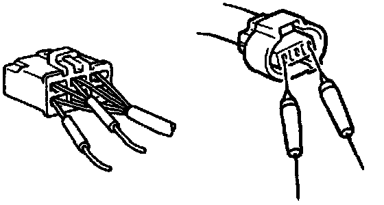 When inserting tester probes into a connector, insert them from the rear of the connector. When necessary, use mini test leads. For water resistant connectors which cannot be accessed from behind, take good care not to deform the connector terminals.