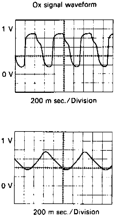 - The correct waveform appears as shown in the illustration, oscillating between approximately 0.1 volts and 0.9 volts.