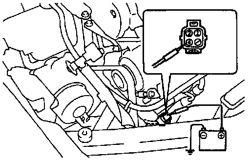 b. Connect the positive (+) lead from the battery to the terminal on the magnetic clutch connector and the negative (-) lead to the body ground.