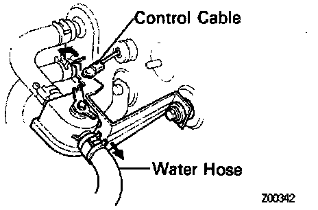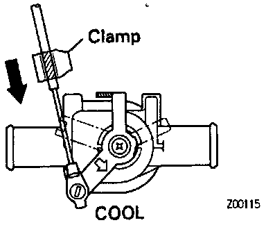b. Set the water valve lever to "COOL", install the control cable and lock the clamp.
