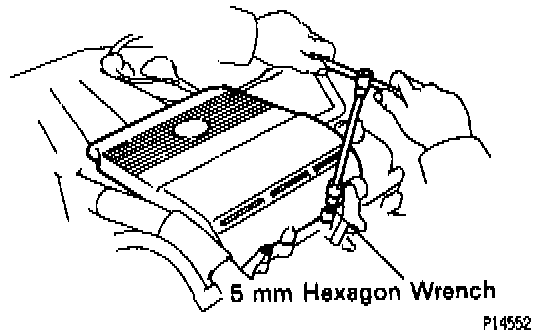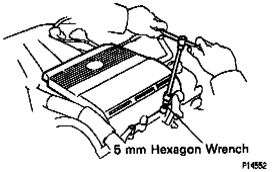 CAUTION: Work must be started after 90 seconds from the time the ignition switch is turned to the "LOCK" position and the negative (-) terminal cable is disconnected from the battery.