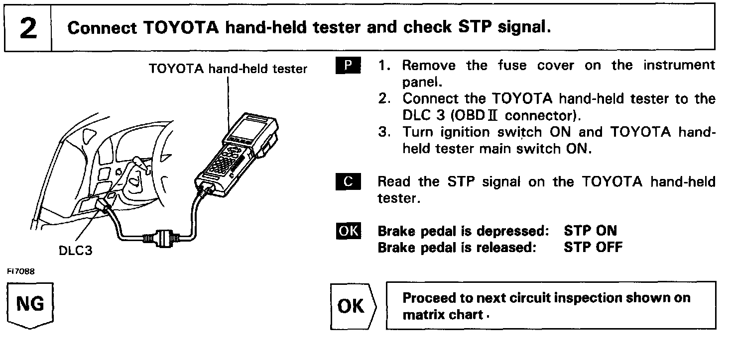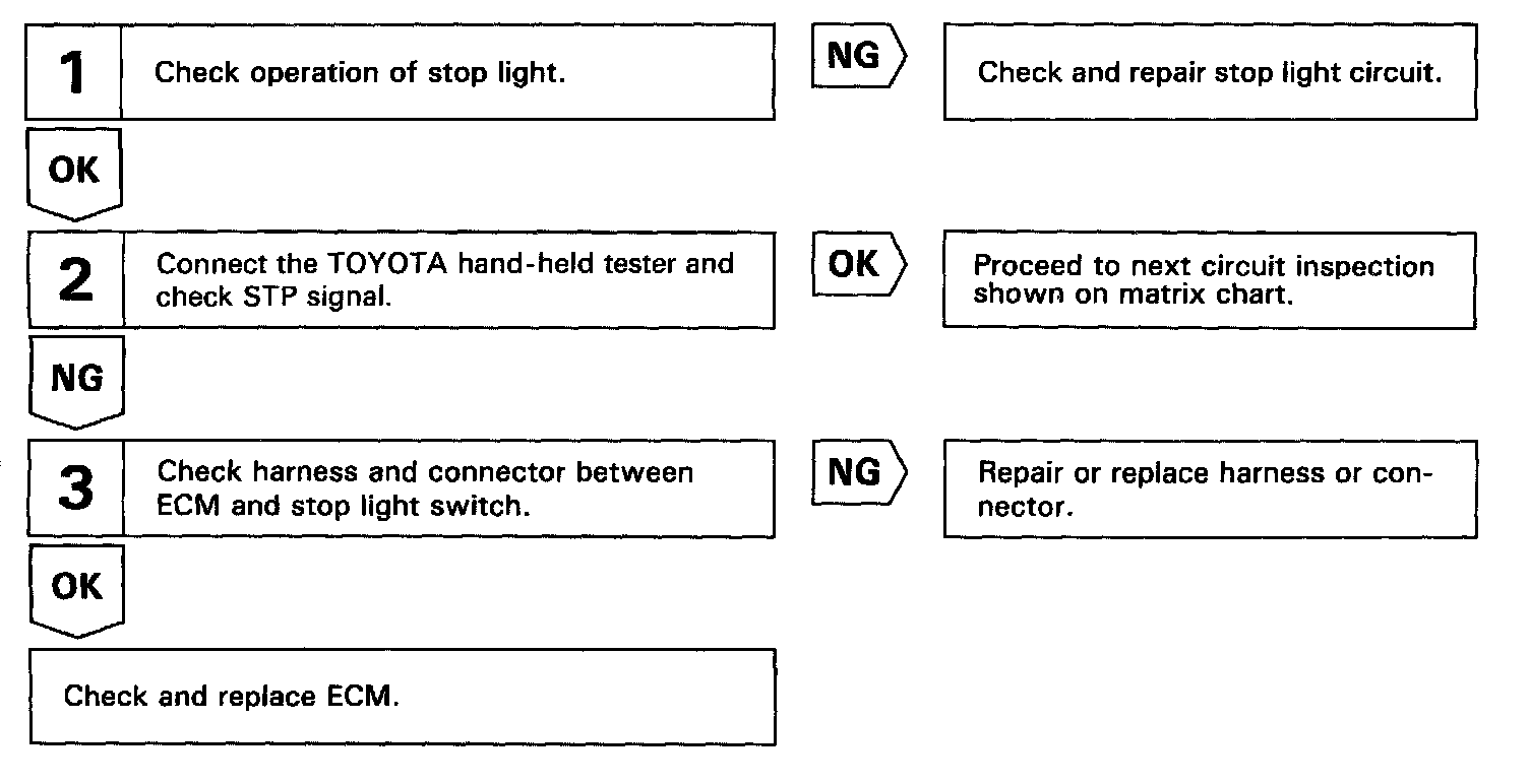 When the brake pedal is operated, this switch sends a signal to ECM. Then the ECM cancels operation of the lockup clutch while braking is in progress.