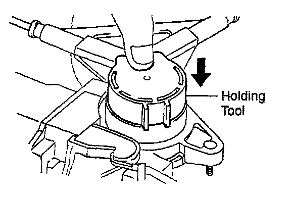 - With the holding tool installed, motor the holding tool with the motor housing.